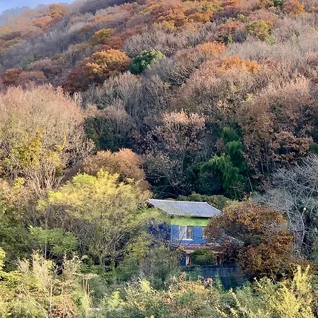 The villa is a property in Okayama, not far from Juzenjiyama. You can get to Byobu Island in a few minutes by car. The nearest airport is Takamatsu, 70 km from the lodge.